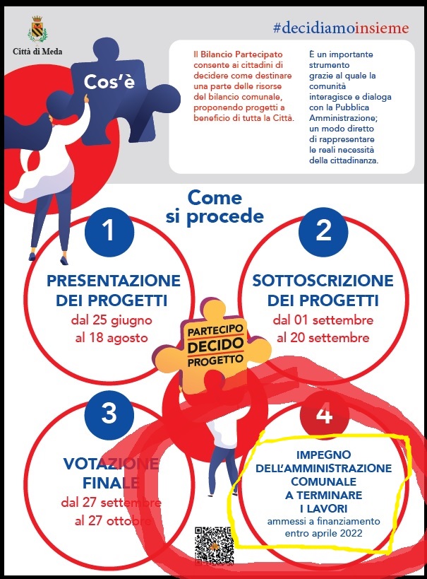 Parliamoci chiaro! Il progetto proposto e vincente, è un’ottimo progetto ma dimostra TUTTA L’INEFFICIENZA DEL BILANCIO PARTECIPATO MEDESE. (Questo lo scriviamo nel rispetto ed a tutela dei proponenti)