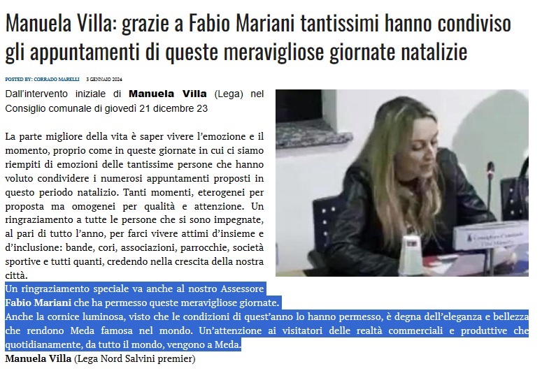E così è stato ascoltando l’intervento della consigliere comunale Manuela Villa rilasciato nel C.c del 21-12-202