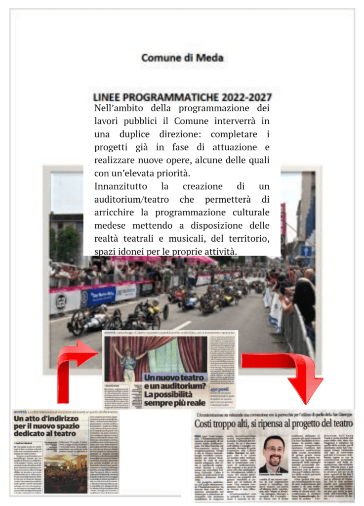 Siamo già a conoscenza della volontà dell’attuale amministrazione di voler realizzare un teatro – Lo si può leggere nelle Linee Programmatiche 2022-2027, Linea 1: Meda più attrattiva –